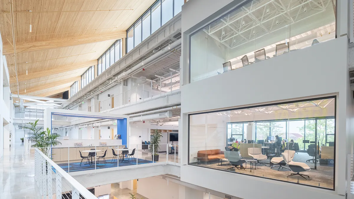 The move and consolidation aims to break down barriers between craft and front-office workers by combining the three business parts in the same location. Within DPR’s new headquarters, 68,160 square feet is dedicated to open office space, while 45,542 square feet is slated for prefabrication. All DPR employees will have equal access to workspaces and amenities.