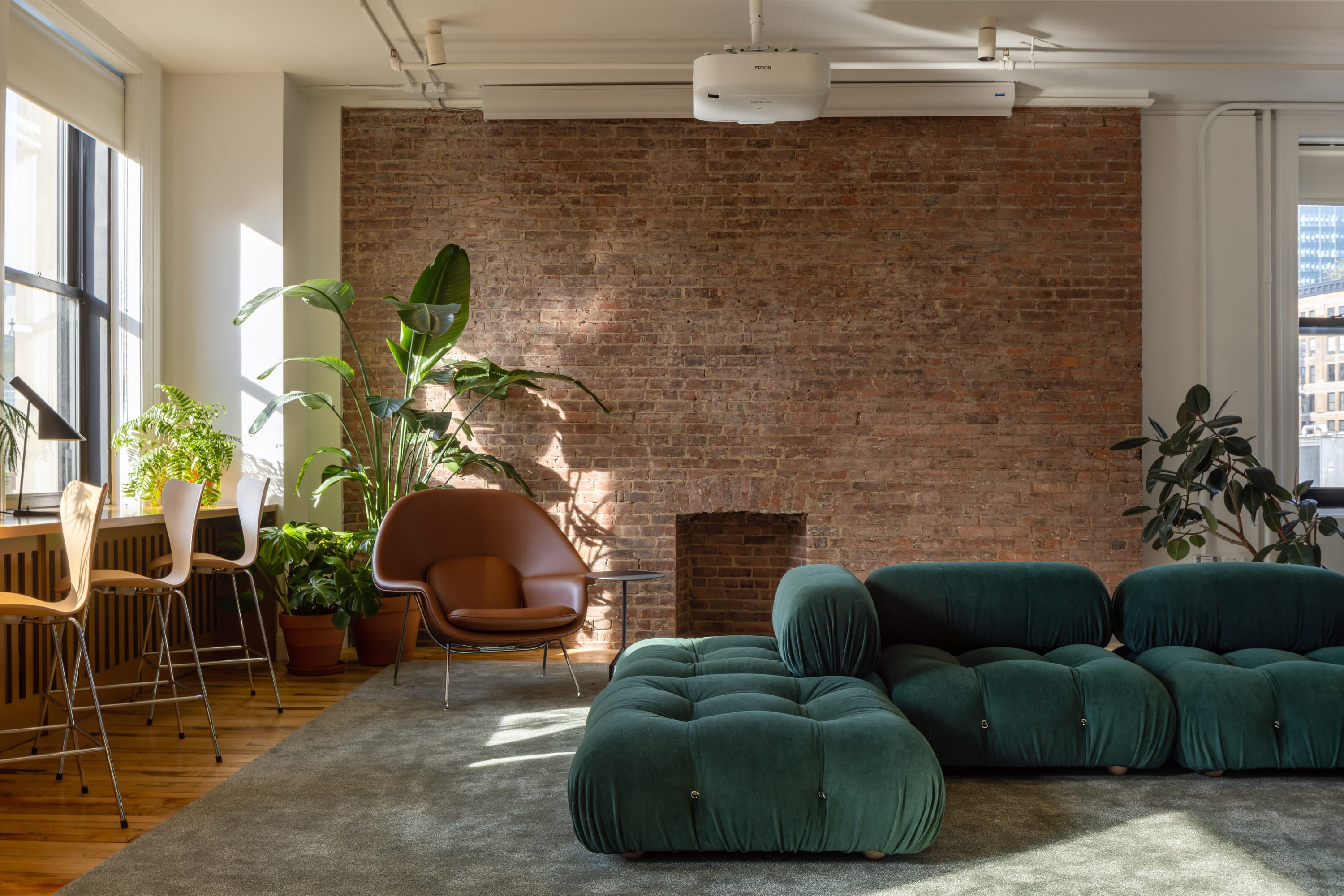 The office's design celebrates the building's original features, such as the mosaic tile floors in the elevator lobbies, which have been meticulously preserved, serving as a historical canvas that complements the new design elements.