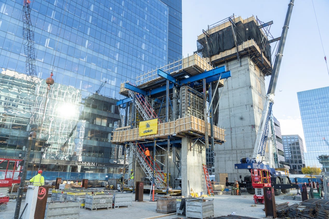 The building’s foundation and underground garage have been in place since 2016, positioning this final phase for timely completion, thanks in part to Doka’s advanced solutions that save time and labor while enhancing safety.